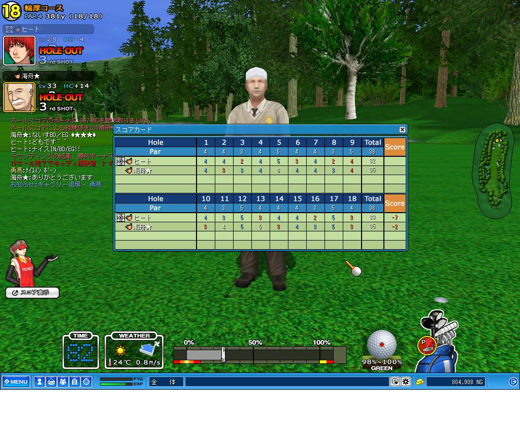 スコアはネット(ハンデ込みの数)で計算します。同スコアの場合、それぞれのグロスで順位決定。